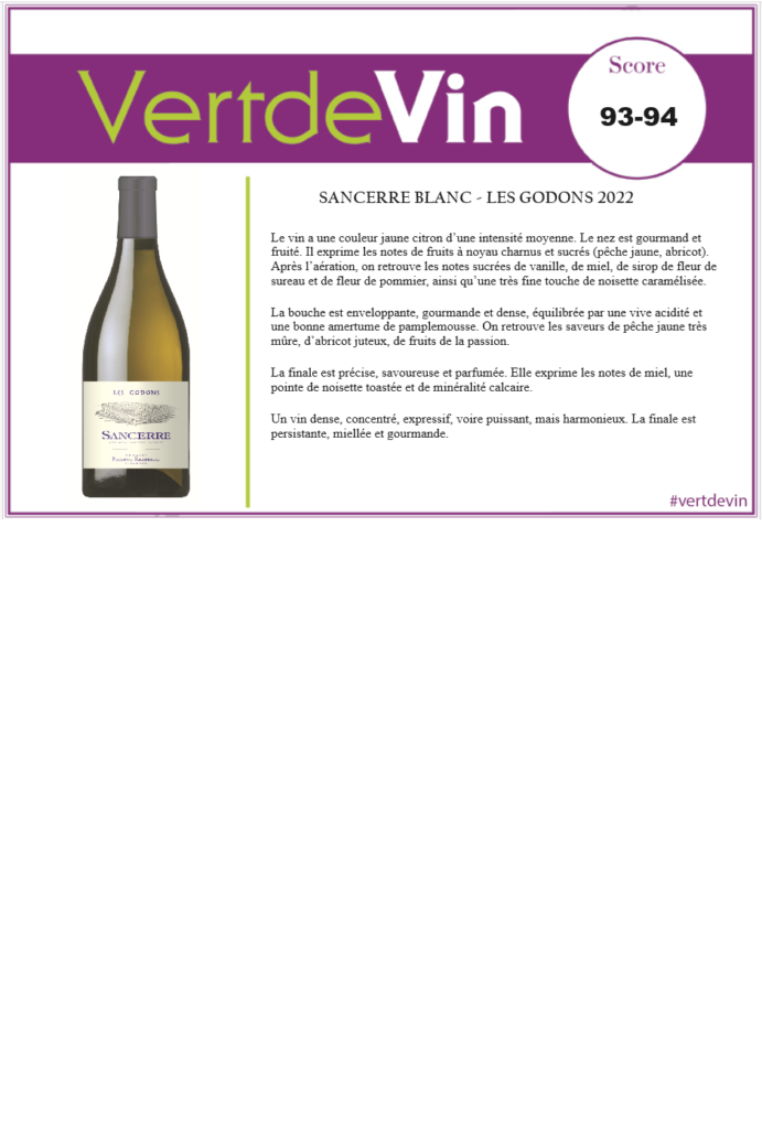 La finale est précise, savoureuse et parfumée. Elle exprime les notes de miel, de cire, une pointe de noisette toastée et de minéralité calcaire.