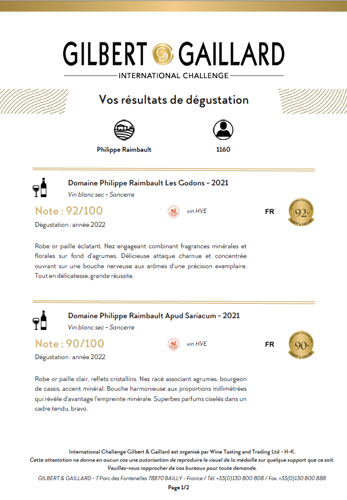 Retrouvez nos commentaires de dégustation au challenge international de Gilbert et Gaillard.